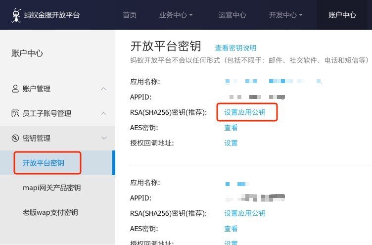 - 打开支付宝 PID 和公钥管理页面