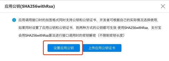 设置应用公钥,供支付宝验证我们使用私钥加密的签名使用。