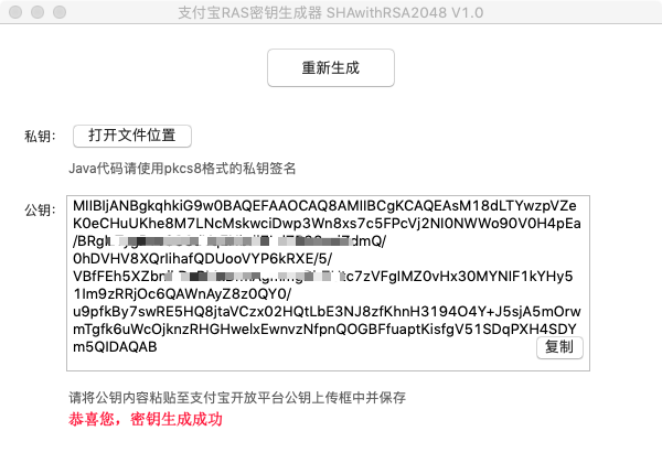 - 打开下载的支付宝密钥生成工具、点击「生成密钥」
