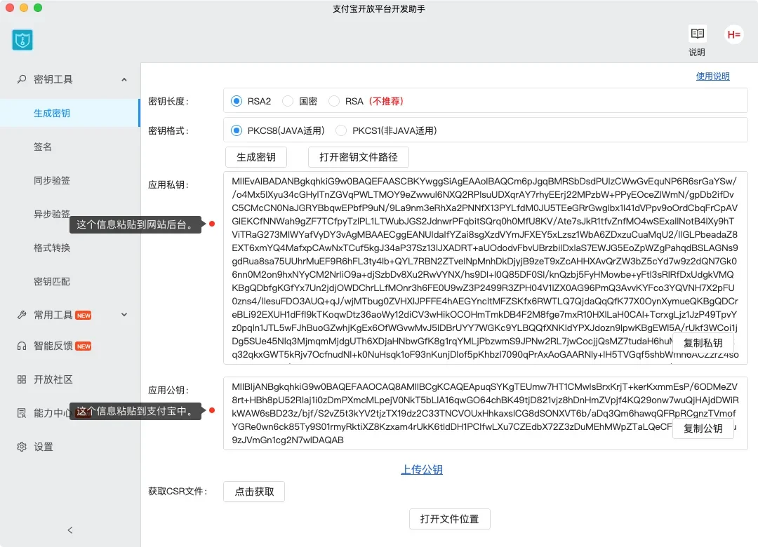 - 支付宝新版密钥生成工具的界面。