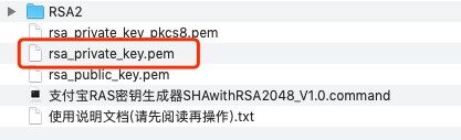 在出现的文件夹中找到「rsa_private_key.pem」或「应用私钥2048」这个文件,这个文件里面的内容就是我们需要的应用私钥,用记事本打开这个文件,复制里面的内容到插件的「应用私钥」处。